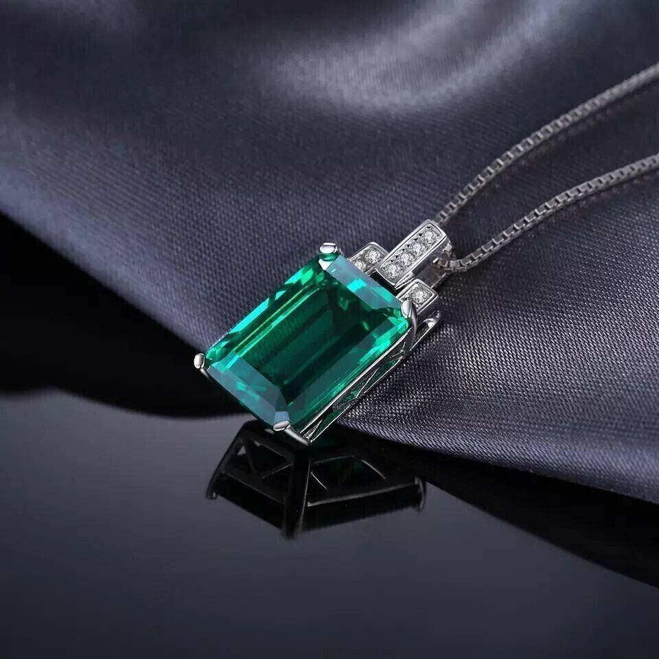 Pingente em pedra Esmeralda de laboratório com corte esmeralda 14mm x 10mm, tendo pinos para prender a pedra.